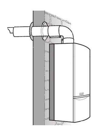 Создание котлов с закрытой камерой сгорания и применение коаксиальных дымоходов позволяет застройщикам отказаться от строительства дорогостоящих вертикальных дымоходов из кирпича или иных материалов. Благодаря тому, что в коаксиальном дымоходе холодный воздух для горения проходит по наружной трубе, а образовавшийся при сгорании дым и пар — по внутренней, конструкторы газовых котлов решили сразу несколько задач: